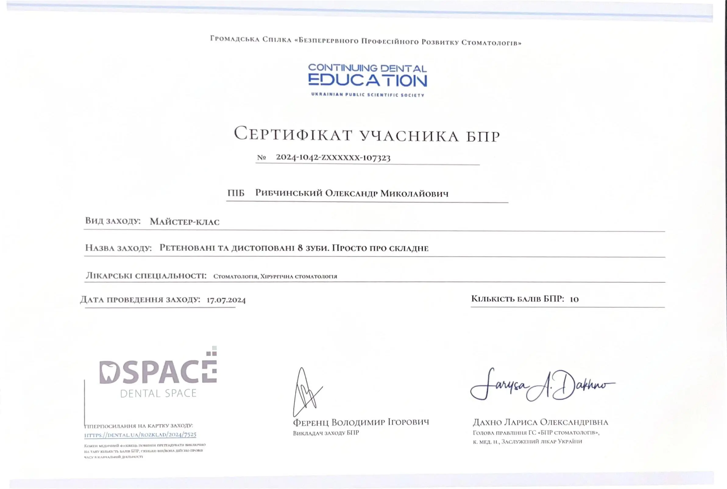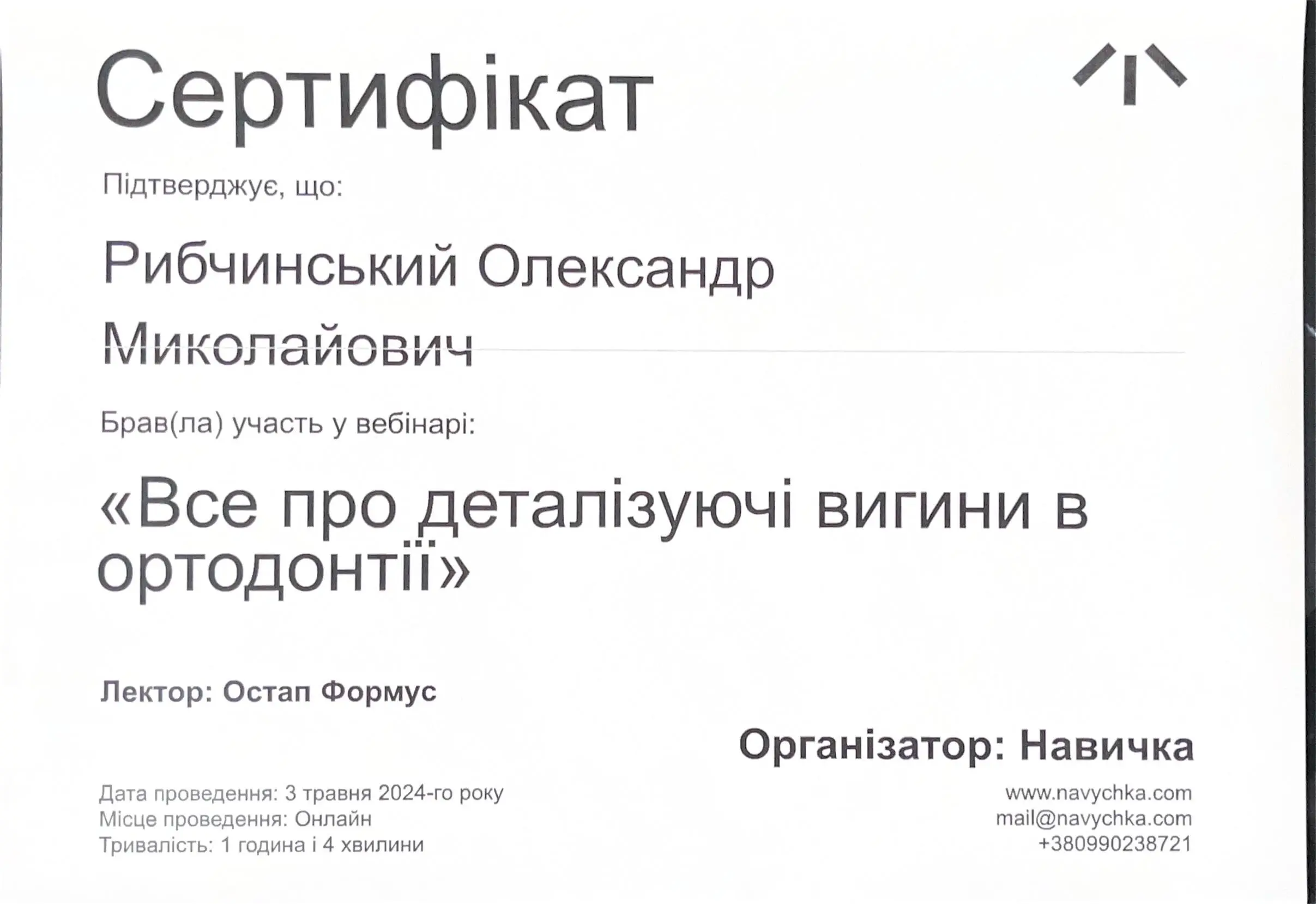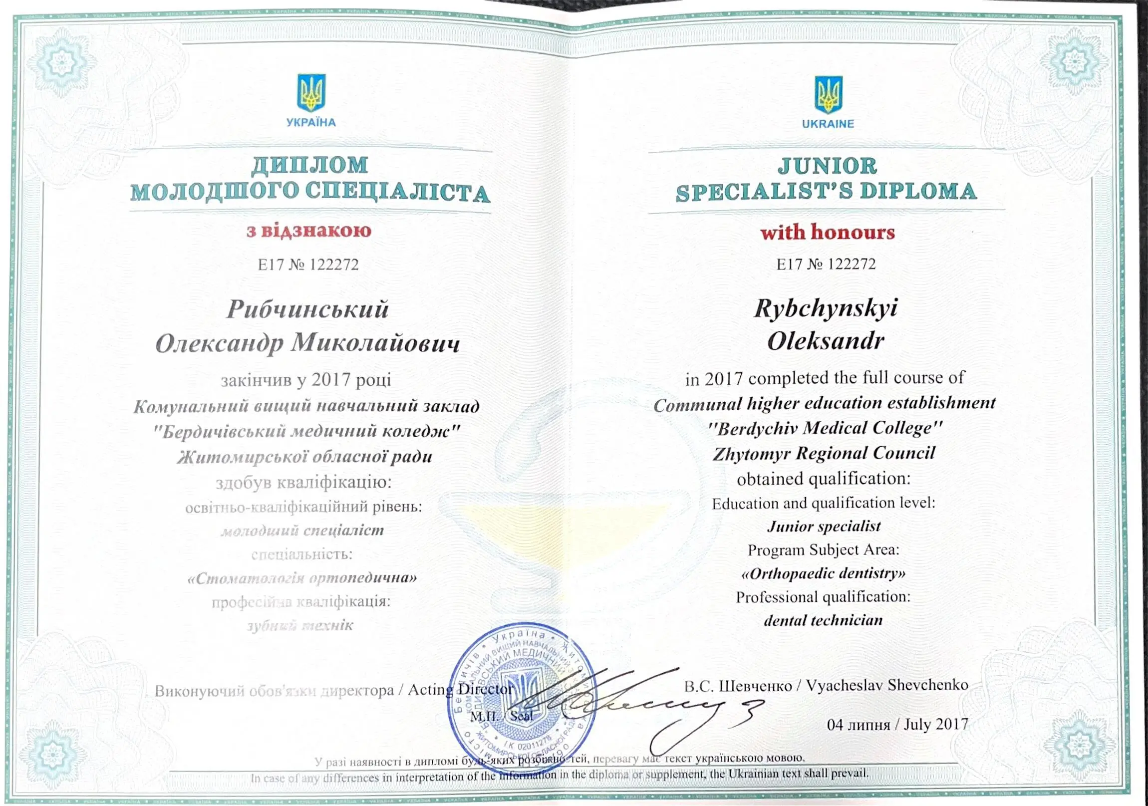 Спеціалізація:Ортодонтія